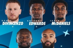 本場比賽森林狼首發(fā)名單:愛德華茲、迪文岑佐、麥克丹尼爾斯、蘭德爾以及戈貝爾。