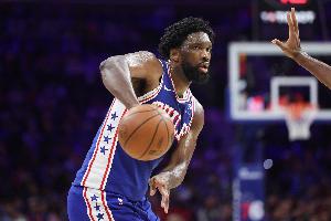 賽季至今,恩比德場(chǎng)均得到23.5分7.1籃板3.3助攻0.6搶斷1.3蓋帽。