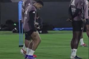 賽前的一段訓練視頻中可以看到,姆巴佩在訓練時謹慎地彎腿測試自己的膝蓋情況,可以看出,他尚未恢復到100%的狀態(tài)。