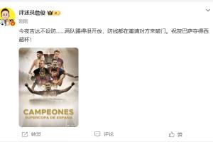 體育資訊01月12日訊 西超杯決賽,巴薩3-2擊敗皇馬奪冠。賽后,評述員詹俊發(fā)文點評。