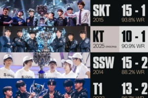 值得注意的是,KT目前10勝1負,若決賽橫掃T1,KT勝率有望躋身歷史第二。