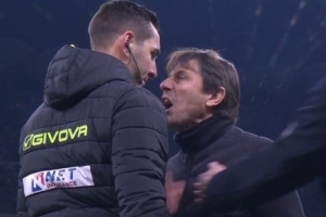 被驅(qū)逐出場(chǎng)后,孔蒂并沒(méi)有離開(kāi),而是留在看臺(tái)圍欄處繼續(xù)指揮。他一直守在球隊(duì)后方,揮舞雙臂大聲呼喊。