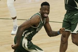 GIF-字母哥哥空切籃下 無(wú)人盯防輕松上演雙手扣籃
