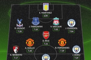 后衛(wèi):穆尼奧斯(水晶宮,7.20分)、塔科夫斯基(埃弗頓,7.18分)、范戴克(利物浦,7.05分)、格瓦迪奧爾(曼城,7.04分)
