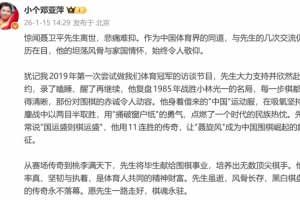 體育資訊1月15日訊 乒乓球名將鄧亞萍發(fā)文,悼念“棋圣”聶衛(wèi)平離世。