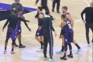 暫停期間,威少、施羅德以及施羅德談笑討論超遠(yuǎn)三分的位置