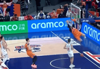 第二節(jié)比賽,洛夫頓快攻反擊雙手暴扣,上海次節(jié)末已領(lǐng)先新疆4分。