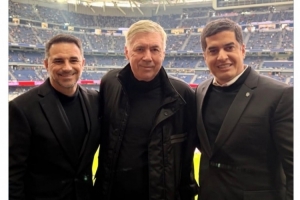 巴西國家隊官方更新社媒動態(tài),曬出安切洛蒂與巴西足協(xié)副主席迪亞斯、國家隊總監(jiān)卡埃塔諾在伯納烏的合照。