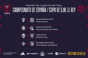 體育資訊1月19日訊 本賽季國(guó)王杯1/4決賽抽簽結(jié)果出爐,阿爾瓦塞特對(duì)陣巴薩,貝蒂斯對(duì)陣馬競(jìng)。