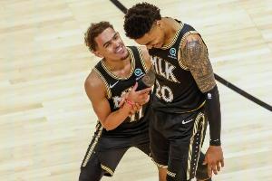 GIF-科林斯和特雷·楊擁抱