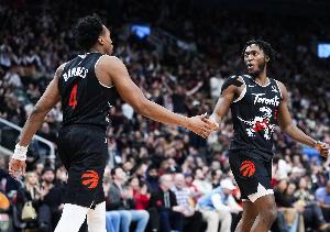 本場比賽,猛龍的進攻打得行云流水,全隊共送出多達42次助攻,這一數(shù)據(jù)能夠排到隊史第三位(前兩位分別是44次和43次),同時也刷新了球隊的賽季助攻數(shù)紀(jì)錄,其中巴恩斯和奎克利兩人本場的助攻都上雙。