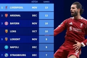 體育資訊1月22日訊 在本輪歐冠,利物浦3-0完勝馬賽,近13場各項賽事保持不敗。德轉盤點了目前五大聯賽球隊各項賽事現存最長不敗場次榜,具體如下: