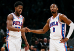 76人進(jìn)攻效率排名聯(lián)盟第17位,防守效率排名聯(lián)盟第11位,場均命中13記三分排名聯(lián)盟第20位。