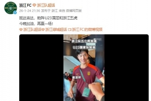 體育資訊1月24日訊 今晚U23亞洲杯決賽,U23國足將與日本U23隊爭冠。賽前,浙江隊社媒曬出為中國隊助威的視頻,前方人員與來自浙江隊的五人進(jìn)行擊拳。