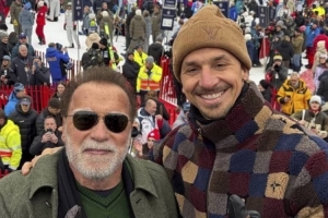 體育資訊1月25日訊 伊布拉希莫維奇在社交媒體曬照,和好萊塢著名影星阿諾·施瓦辛格一起去看滑雪世界杯。