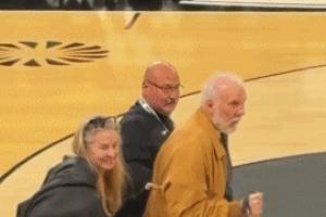 波波維奇被球迷拍到現(xiàn)身昨日奧斯汀馬刺(馬刺在G聯(lián)賽的下屬球隊(duì))比賽現(xiàn)場(chǎng),他的中風(fēng)后遺癥明顯,走路需要用到拐杖同時(shí)需要人攙扶。
