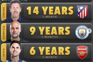 體育資訊1月25日訊 數(shù)據網站Score90盤點了五大聯(lián)賽球隊現(xiàn)任主帥最長執(zhí)教時長榜單,具體如下: