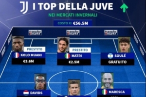尤文最佳冬季引援陣容(總花費(fèi)5650萬歐元):