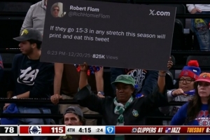 而在此前,一位網(wǎng)友曾表示,如果快船本賽季能夠在任意階段取得15勝3負,他將打印這條推文并吃掉。