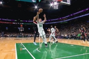 GIF-呂佩爾與謝爾曼爭(zhēng)搶籃板,裁判吹綠軍球,開拓者挑戰(zhàn)失敗