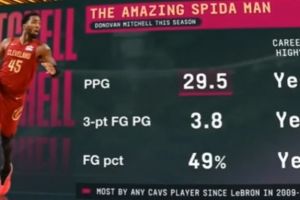 米切爾場均29.5分是自2009-10賽季的詹姆斯(29.7分)以來隊史最高場均得分
