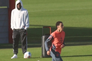 值得一提的是,好友阿方索·戴維斯(25歲/7個半月前右膝十字韌帶撕裂)在訓(xùn)練課開始后不久便身著休閑服來到訓(xùn)練場。這位加拿大國腳隨著穆西亞拉用手機(jī)連放的XXL音響中說唱樂節(jié)奏舞動,并為正在進(jìn)行恢復(fù)訓(xùn)練的伙伴歡呼助威。這位左后衛(wèi)情緒高漲,強勁的節(jié)拍響徹拜仁訓(xùn)練基地。