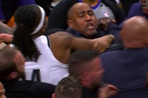 雙方眾人迅速集結(jié),奧尼爾推了一把杰明,曼恩又上前推奧尼爾!