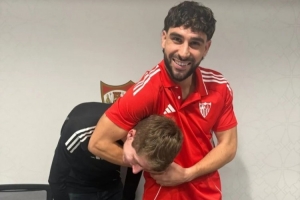 隨后,他又發(fā)了一張照片,照片里他用胳膊夾住了塞維利亞媒體團(tuán)隊(duì)的一名成員的脖子。他為這張照片配文:“女士們先生們,我們抓到他了。”