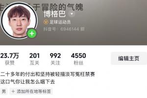 張浩的社媒主頁上寫著:二十多年的付出和堅持被輕描淡寫冤枉禁賽 這口氣你讓我怎么咽下