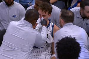 GIF-小瓦格納被卡馬拉肘到鼻子,下場接受治療!