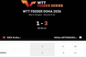 體育資訊1月29日訊 2026WTT支線賽多哈站男單,溫瑞博1-3不敵中立運(yùn)動員尼基塔,止步首輪。