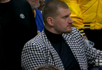 比賽第二節(jié),轉(zhuǎn)播鏡頭給到替補(bǔ)席身穿便裝的約基奇。