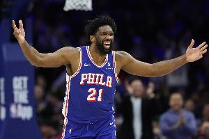 本賽季恩比德場(chǎng)均砍下25.7分7.4籃板3.9助攻,76人目前26勝21負(fù)排名東部第六。