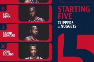 體育資訊1月31日訊 快船客場(chǎng)戰(zhàn)掘金,首發(fā)陣容出爐。