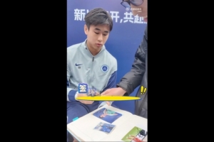 體育資訊2月1日訊 據(jù)記者程文莉消息,深圳新鵬城球員戴偉浚昨日出席活動,滿足球迷簽名合影的要求。