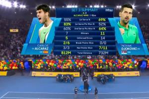 體育資訊02月01日訊 澳網(wǎng)男單決賽,38歲德約科瓦奇vs22歲阿爾卡拉斯。