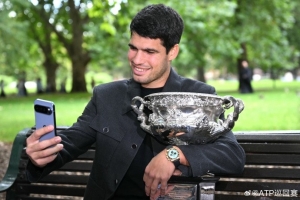 體育資訊2月2日訊 ATP官方曬圖,阿爾卡拉斯拍攝澳網(wǎng)冠軍寫真。