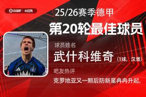 第20輪評(píng)選結(jié)果出爐,18歲熱刺外租小將武什科維奇破門,攻防兩端發(fā)揮俱佳,幫助漢堡逼平拜仁。武什科維奇當(dāng)選【體育資訊X小紅書(shū)德甲第20輪最佳球員】!