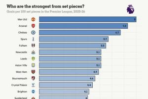 體育資訊02月03日訊 據(jù)TA報(bào)道,本賽季至今,曼聯(lián)是英超定位球效率最高的球隊(duì),每100次定位球機(jī)會(huì)就能打入8球,高于阿森納的7.3球。