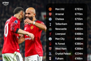 體育資訊2月3日訊 外媒Prime Video Sport根據(jù)德轉數(shù)據(jù)列出了英超俱樂部近5個賽季的凈支出,曼聯(lián)、阿森納、切爾西位列前三,利物浦和曼城排名六、七,布萊頓則是唯一有凈收入的球隊。