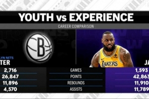 湖人客場挑戰(zhàn)籃網(wǎng),轉(zhuǎn)播方曬出籃網(wǎng)全隊(duì)和詹姆斯的數(shù)據(jù)對比,籃網(wǎng)全隊(duì)的得分、籃板和助攻之和都沒有詹姆斯的個(gè)人數(shù)據(jù)多。