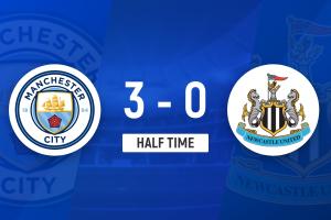 半場結(jié)束,曼城暫3-0紐卡斯?fàn)柭?lián)。