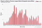 據(jù)Opta統(tǒng)計(jì),英超歷史上有49%的球員與米爾納同場(chǎng)競(jìng)技過,以隊(duì)友或?qū)κ值纳矸荨A硗?,米爾納在英超與281位不同的隊(duì)友并肩作戰(zhàn),這些隊(duì)友出生的年份跨度從1968年至2007年。