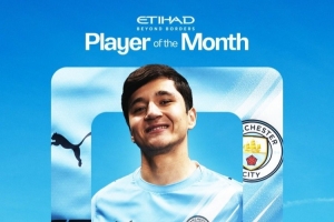 體育資訊2月7日訊 曼城官方宣布胡桑諾夫當選球隊1月最佳球員。
