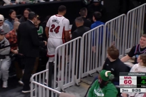 GIF-鮑威爾突破傷到手指,回更衣室了