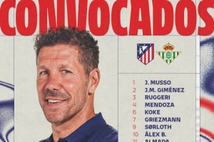 體育資訊2月8日訊 北京時(shí)間明天凌晨,馬競(jìng)將在西甲第23輪比賽中主場(chǎng)對(duì)陣貝蒂斯,馬競(jìng)公布了此役的球員名單??柖嗨鳌屠飱W斯缺席,瑟爾洛特回歸。