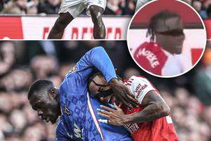 比賽中,布羅比和馬杜埃凱爭(zhēng)搶球權(quán),扯掉了后者的發(fā)帶。馬杜埃凱無(wú)奈攤手