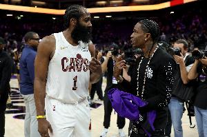 賽后,美國知名饒舌歌手Travis?Scott打斷了正在采訪的哈登,從哈登手中搶過話筒在全美觀眾前大喊: