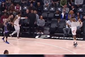 終場前2分多鐘,騎士反擊,米切爾回傳助攻哈登命中空位三分反超比分。在哈登投進(jìn)這球之前,米切爾已經(jīng)提前慶祝了。