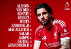 利物浦首發(fā):1-阿利松、8-索博斯洛伊、4-范戴克、5-科納特、6-凱爾凱茲、38-赫拉芬貝赫、10-麥卡利斯特、7-維爾茨、11-薩拉赫、18-加克波、22-?;倏?/p>